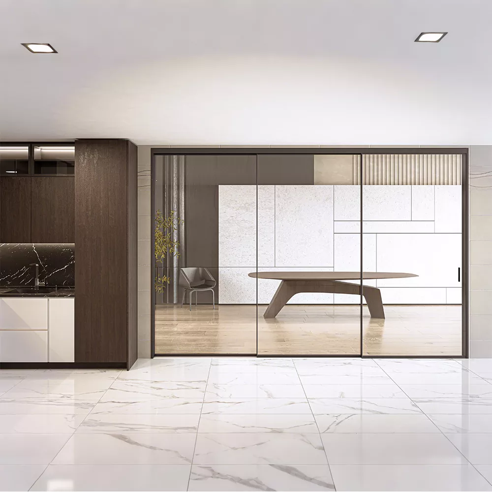 ประตูบานเลื่อนที่แคบมากหมายถึงการใช้กรอบที่แคบเป็นพิเศษ + การออกแบบรางที่เรียบง่าย โดยมีขอบที่แคบมาก 1.5-2 ซม. เพื่อทำลายความรู้สึกหนักหน่วงของประตูบานเลื่อนแบบดั้งเดิม ทำให้พื้นที่โปร่งใสและเปิดกว้างมากขึ้น ไม่ว่าจะเป็นการขยายความจุของอพาร์ทเมนต์ขนาดเล็กหรือเพื่อเพิ่มความรู้สึกหรูหราในแฟลตขนาดใหญ่ ก็สามารถสร้างสมดุลที่สมบูรณ์แบบระหว่างฟังก์ชั่นและสุนทรียภาพในรูปแบบของ "ขอบเขตที่มองไม่เห็น"